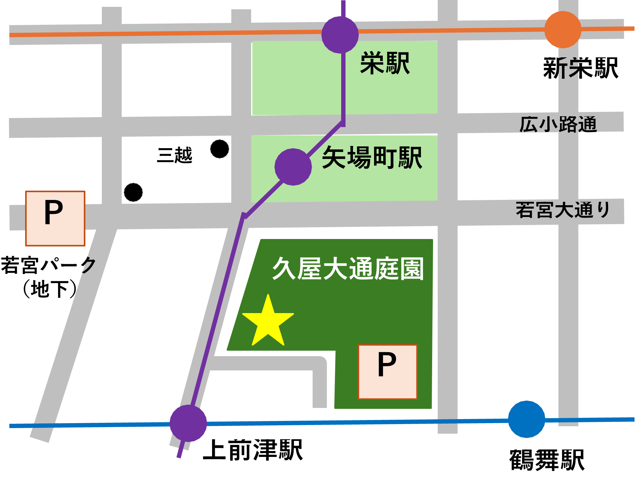 名城線「矢場町」4番出口から南へ徒歩3分 鶴舞線「上前津」1番出口から北へ徒歩5分 |