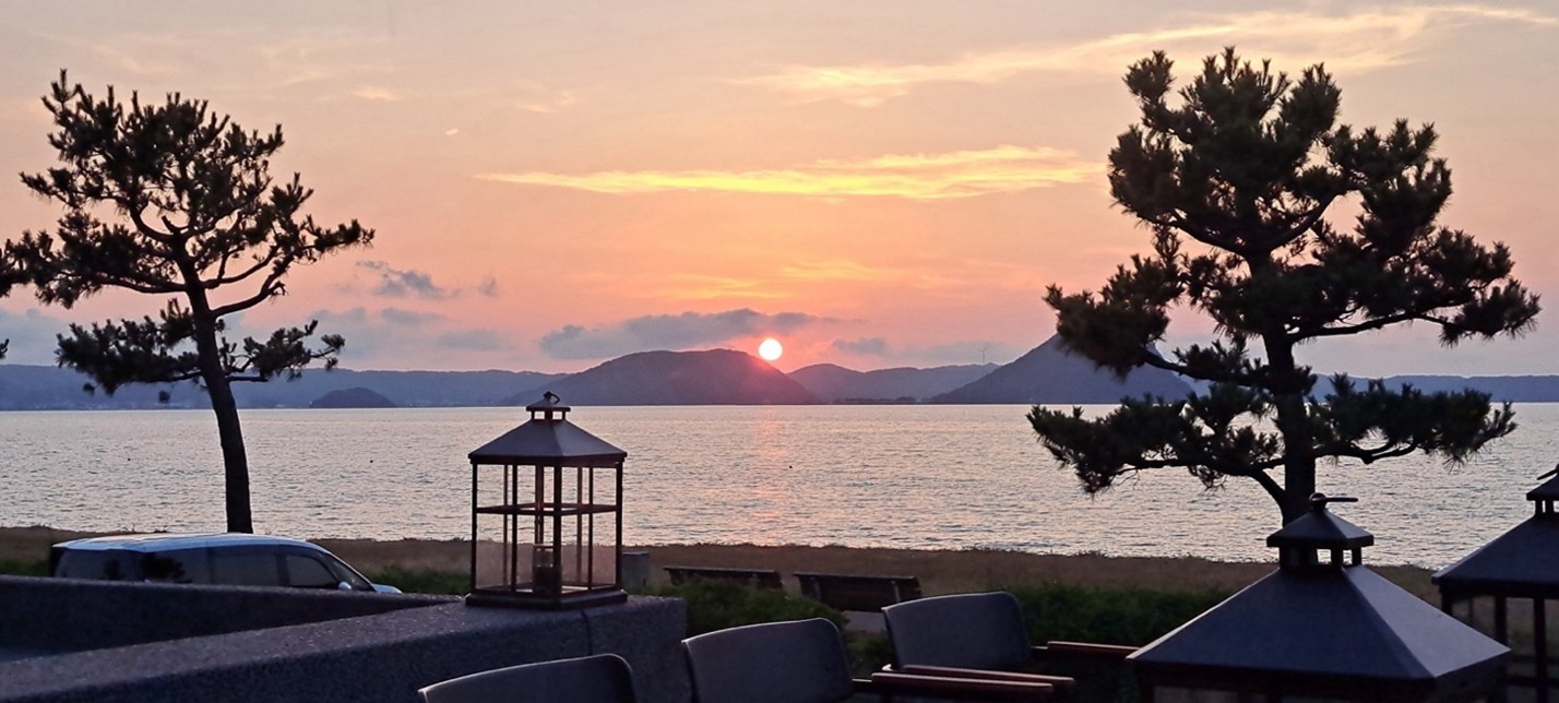 海のさざ波に赤く染まった夕陽が沈んでいく景色を観ながらの夕食は最高でした。北は北海道、南は沖縄から参加され、皆さんお元気に見受けられました。この日を目指して歌の練習などされたのでしょう。みんなで夕食後歌いました。パーキンソン病を忘れてしまいそうでした。